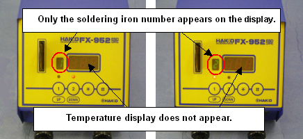 Check the display after switching to the soldering iron number for the soldering iron that does not get hot. Only the soldering iron number appears as shown in the pictures above.