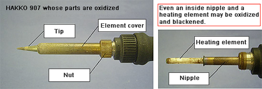 Check 1. Are the tip, element cover, nut, etc. oxidized?